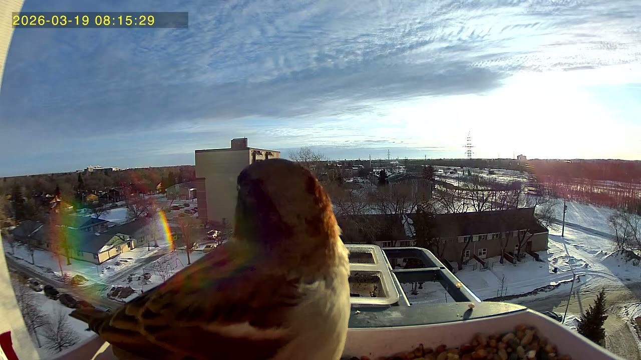 • Busy breakfast time at the bird feeder #Birdcam